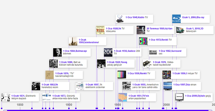 Televizyon ile ilgili bilinen ilk kez 1884 yılında Paul Gottlieb Nipkow tarafından keşfedildiğidir. Ancak o dönemdeki televizyonlar yalnızca hareketli resimleri gösterebiliyordu ve yaygın bir kullanım alanı bulmuyordu. 1920 yılına geldiğimizde John Logie Baird tarafından geliştirilen televizyonlar ise renkli görüntüleri ve sesli yayınları da destekleyebildi ve daha yaygın bir kullanım alanı bulmaya başladı. Daha sonra televizyon teknolojisi hızla ilerlemeye devam etti. 1950 ile başlayan yıllarda çoğunlukla analog yayınlar yapılıyordu ve televizyonlar genellikle “katot ışınlı valf” (CRT) ekranlar kullanıyordu. Dijital televizyonlar ise ancak 1980‘lerde ortaya çıktı ve yaygınlaşması ise bir sonraki 10 yılda yani 1990‘larda olacaktı. 21. yüzyılın başlarında ise LCD ve LED ekranların kullanımı yaygınlaştı ve televizyonlar artık çok daha ince ve enerji verimli hale geldi. Günümüzde ise 4K ve 8K gibi yüksek çözünürlüklü televizyonlar mevcut ve internet üzerinden yayın yapabildiği için, yayınların çeşitliliği de arttı.